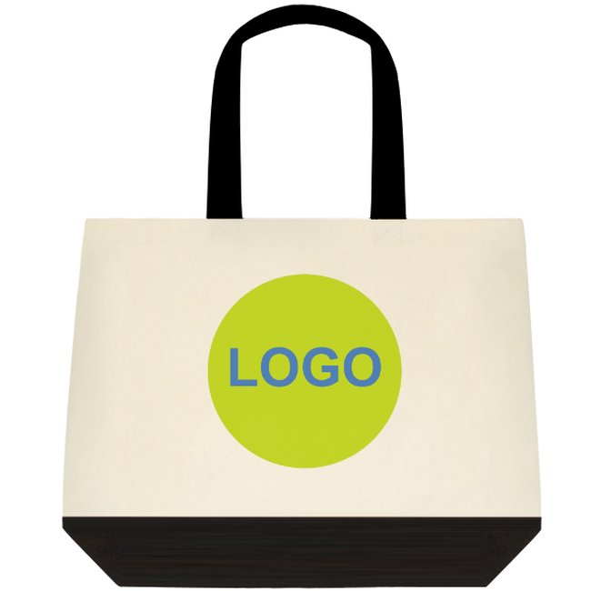 2-sided cotton tote bag. Bottom and handles are in black, center is in white. Comes in Deluxe size 14.96" x 18.5" x 4.72".